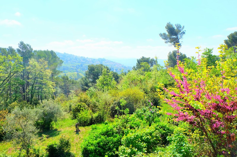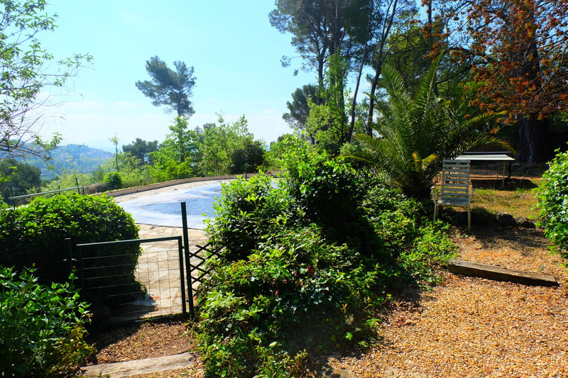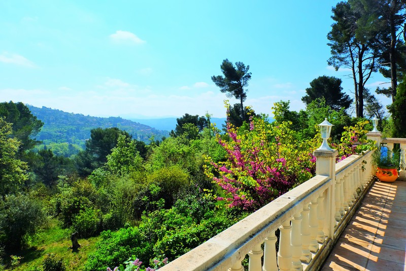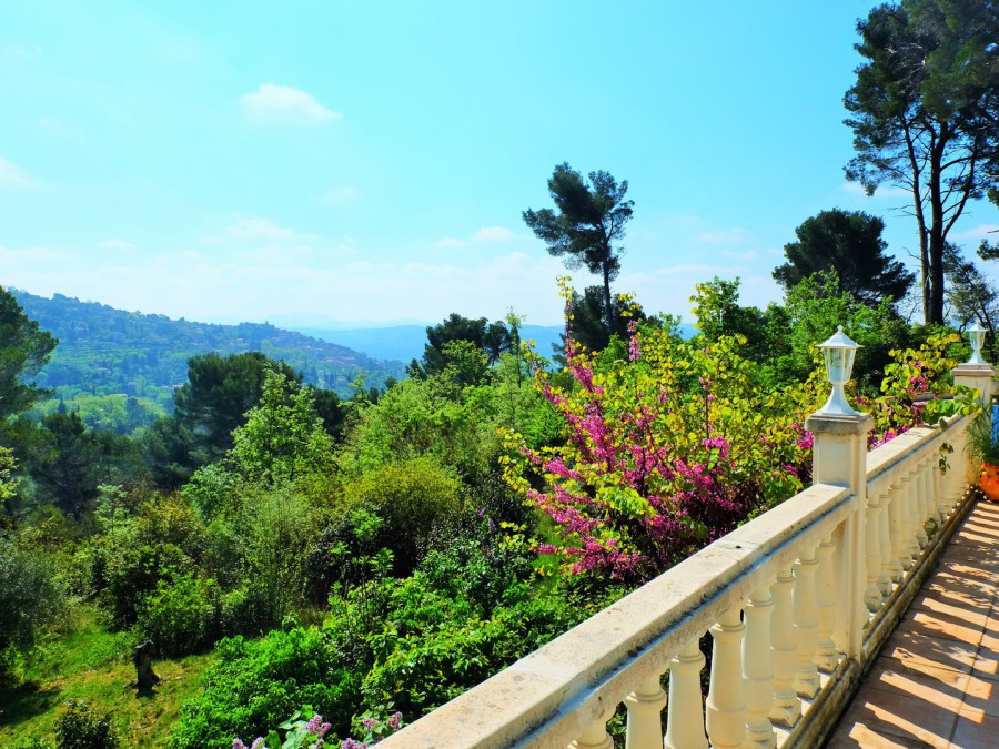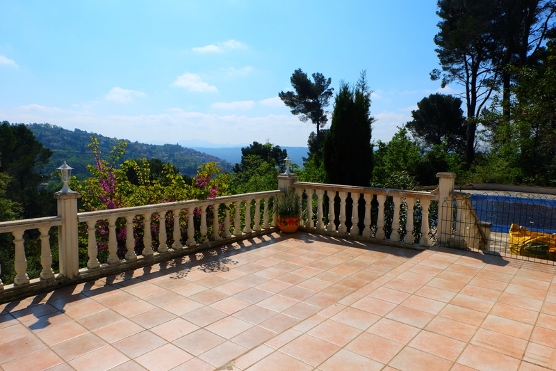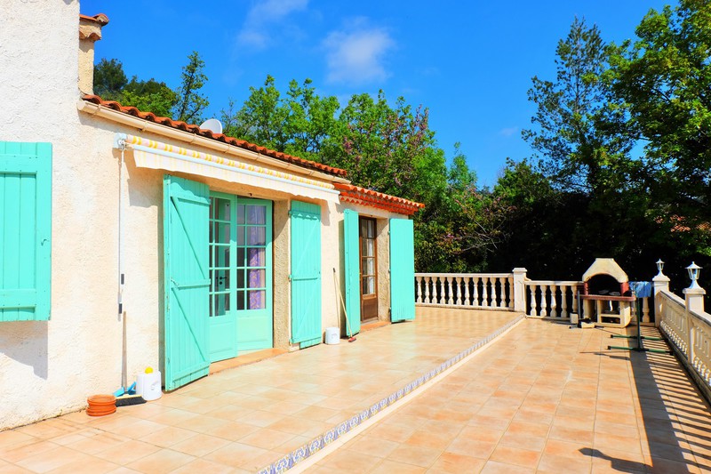 Une grande terrasse ensoleillée avec une superbe vue sur le village de Fayence