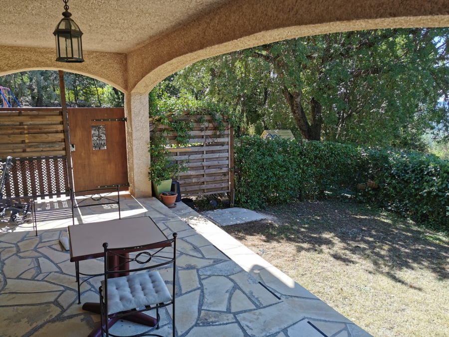 Tourrettes, dans un quartier résidentiel, appartement situé en rez de jardin d'une villa et composé :